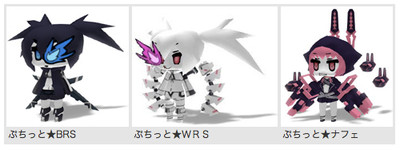"Petite" Black Rock Shooter, White Rock Shooter, and Xnfe will be included in the Black Rock Shooter character item series. Players' position and use avatars to approach a variety of portable items in the PlayStation Home social gaming platform.