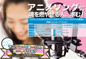 Entrants must be between 13-22 years of age and must attach a song sample to their applications. Avex is accepting applications until March 31, and the companies will host three rounds of selection screenings between April and May to find a winner. The winner will sing the theme song for an anime that will premiere in 2012.