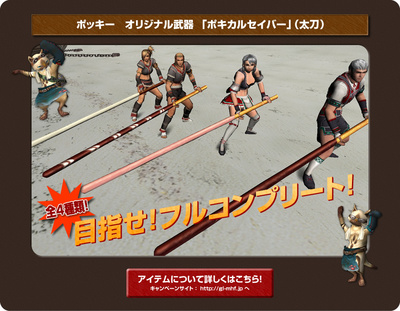 Monster Hunter Frontier Online was released for personal computers in 2007 as a spinoff to CAPCOM's Monster Hunter franchise. Since last October, Glico has been holding a similar promotion for the game by creating weaponry based on their Papico Choco Coffee snack and Giant Cone ice cream. The former would grant players the Papirio Saber dual swords and the latter would offer the Cone Stamp hammer.