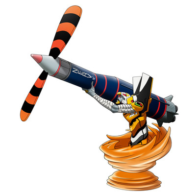 Studio Khara's Evangelion Store website is listing a tabletop fan in the shape of the Eva Unit 00 from the Evangelion: 2.0 You Can [Not] Advance film holding an N2 rocket. The fan is being created by the electroys brand of the Tops manufacturing company. While only conceptual images are available for the USB-powered fan, the page advertises that the Eva Unit will stand 130 millimeters (about 5 inches) tall and that the N2 rocket will be 190 millimeters (about 7.5 inches) long.
