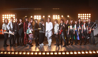 A group of 27 former Kamen Rider and Super Sentai (Power Rangers) franchise song performers are singing the theme song for the upcoming crossover movie Kamen Rider × Super Sentai: Super Hero Taisen. Known as Hero Music All Stars, the group recorded the song "Jōnetsu~We are Brothers" and also appeared at an event in January to celebrate the Kamen Rider franchise's 40th anniversary and the Super Sentai series' 35th title.