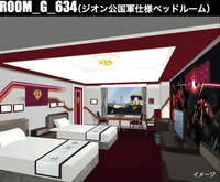 The "Room-G Special Type" suite features an Earth Federation-themed living room and and Zeon-themed bedroom, totaling 84 square meters (about 900 square feet) of space. The room will feature Gundam art on its walls, as well as Gundam-themed chairs, room keys, towels, and more. Visitors staying in the room will also be able to order from a special Gundam-themed room service menu. While the room and hotel are located near the 1/1 Gundam statue, it will not be viewable from the room.