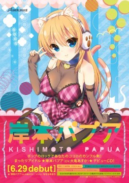 Cosmic Record, the independent record label run by Sol International, will release Sec☆Ret, the debut CD by Kishimoto Papua, a "nonexistent" virtual idol voiced by Asuka Ōgame (Erio in Denpa Onna to Seishun Otoko, Daidalos in Heaven's Lost Property) on June 29. Fuminori Matsumoto, also known as szak, will produce the music for the album, while Mechiru Nanase will illustrate the character.