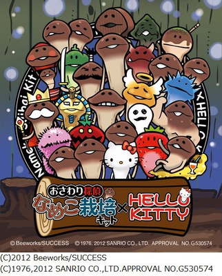 As part of the one-year celebration for their Osawari Tantei Nameko Saibai Kit (Touch Detective Mushroom Garden/Fungi Gardening Kit) smartphone app, the developer BeeWorks announced on Tuesday that the product will be involved in a crossover with Hello Kitty. While details about the crossover have yet to be revealed, there are plans to create related goods this fall.