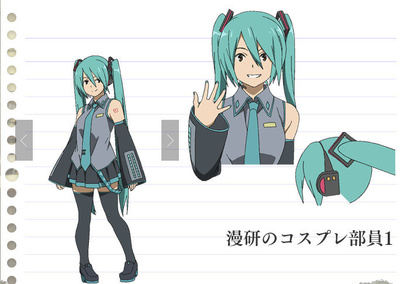 The official website for Kyoto Animation's Hyou-ka TV anime updated on Friday with characters cosplaying as vocaloids. Four manga club cosplay members dressed as Hatsune Miku, Kagamine Rin and Len, and Megurine Luka.