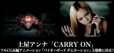 The official website for the 3D CG Biohazard: Damnation anime film has announced that its theme song will be "Carry On" by Anna Tsuchiya (Kamikaze Girls' Ichigo, singing voice for NANA television series' NANA Osaki).