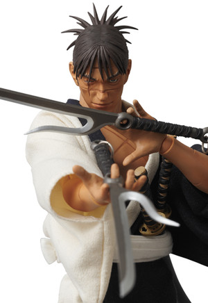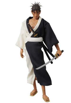 Sculptor "Motor Ken" designed this action figure, complete with Manji's many weapons such as his signature Imo-no-Kami Tatsumasa blades. Mieko Akimoto designed the figure's clothing with wire inserts, so fans can even adjust the folds of the clothing for dynamic, wind-swept poses.
