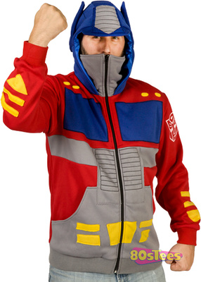 The 80stees.com retail website is currently selling two zip-up costume hoodies inspired by the Transformers characters Optimus Prime and Grimlock.
