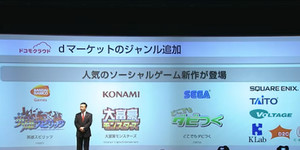 NTT Docomo also announced its title lineup for "dGame," the social game service it plans to launch late next month. The titles include Namco Bandai Games' Eiyū Spirits, Kamen Rider Legends and Tales of Kizuna; Square Enix's Sengoku IXA, KLab's Captain Tsubasa ~Tsukurō Dream Team~, D2C's Evangelion ~Zettai Bōeisen~ for dGame, and Voltage's Ōji-sama no Propose (localized on GREE as Be My Princess). NTT Docomo has not annouced plans to bring dGame outside Japan; NTT Docomo has attempted to bring its services overseas in the past, but has not seen much market penetration outside Japan.
