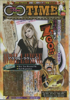 This year's 47th issue of Shueisha's Weekly Shonen Jump magazine is announcing on Monday that Canadian singer Avril Lavigne is contributing two theme songs for this year's One Piece Film Z film.