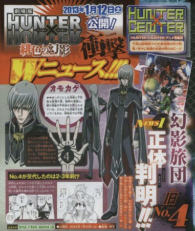 The film, the first in the Hunter X Hunter franchise, will open in theaters in Japan on January 12, 2013. Yoshihiro Togashi's original manga has more than 60 million copies in circulation, and it already inspired two television series.