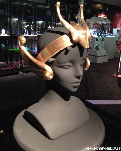The mask, titled “RMM (Real Material Model) Rebirth Bronze Cloth Pegasus Mask," promotes Bandai's Saint Seiya figures such as the EX Pegasus Seiya. It sat alongside other displays and figures from different anime series, including Magi, Fate/Zero, Pretty Cure, Sailor Moon, and Dragon Ball.