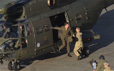 London's Trafalgar Square was completely closed off to the public on Sunday due to the filming of Doug Liman's live-action film adaptation of Hiroshi Sakurazaka's All You Need Is Kill novel. The film's star Tom Cruise was dropped into the well-known tourist spot from a Royal Air Force helicopter, dressed in a military uniform. Tanks were also set up in the square for filming. The Telegraph newspaper and the Just Jared film news website have both posted images from Sunday's filming.