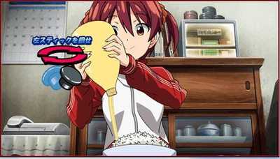 Namco Bandai Games unveiled a downloadable Vividred Operation: Akane to Mayo tto Operation! (Vividred Operation: Mayonnaise Operation With Akane!) mini game on the PlayStation Network Store in Japan on Thursday. In this all-ages puzzle game inspired by the anime, players must squirt mayonnaise onto Akane's curry rice dish at the correct speed.