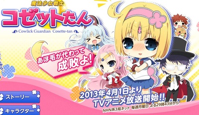 Han Games presents Cowlick Guardian Cosette-tan or Mahō Shōjo Senshi Cosette-tan, the magical girl television anime that debuted on April 1 on NHN.