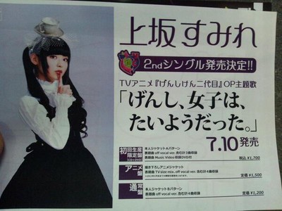 The song "Genshi, Joshi wa, Taiyō Datta" will ship on July 10 in a limited-time pressing with the full track and the shortened television version of the song. A separate limited first edition will not have the television version of the theme, but it will have a DVD with a music video for the song. Finally, a standard edition will have the theme song and a song to be named later. All three versions will include the second track "Tetoriashitori" and the vocal-less version of "Genshi, Joshi wa, Taiyō Datta."