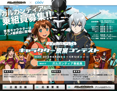 Those who wish to participate must be a member of pixiv and must tag their artwork with the "ガルガンティア乗組員" (Gargantia Crew) tag. The deadline is May 12 at 11:59 p.m. pixiv has also listed the full contest rules. The official contest page is also hosting entries that have already been submitted.