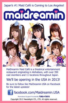 The Japanese maid café chain MaiDreamin announced in December that it will open a branch in Little Tokyo, Los Angeles this year. An opening date is scheduled no earlier than summer. Branches are also being considered in New York City and Boston.