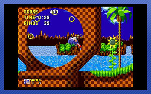 The new version adds the spin dash move, mid-game saves, the option to skip to any stage or act freely, and the choice to play the Japanese or overseas version (with slightly different layouts and bonuses). The game even takes advantage of the stereoscopic display to allow players to recreate the rounded, bulged screen of a old CRT television. Otherwise, the update still retains the familiar six zones and speedy gameplay.