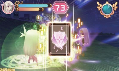 In the game, Illya will use elemental cards to fight enemies. In battle mode, the top screen on the 3DS will feature the characters and their Heroic Sprits fighting using common physical and magical attacks, and the bottom screen will feature the card deck the player has assembled for fighting. Mai Kadowaki will reprise her role as Illyasviel and Kaori Nazuka will reprise her role as Miyu Edelfelt in the game.