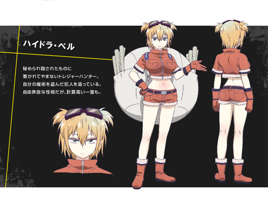 Emi Sarah Bridcut (Problem children are coming from another world, aren't they?, Majestic Prince) plays Hydra Belle, a treasure hunter who is uncontrollably drawn to secret hidden objects. She is currently chasing the person who stole her magic technique. She usually has an easy-going personality, but also has a side that is very calculating.
