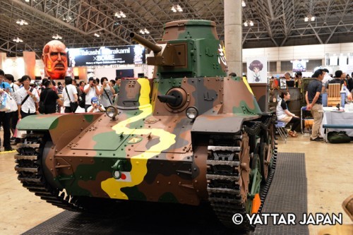 Full-size plastic models of the German Wiesel 2 armored vehicle and the Type 95 Ha-Go, a light tank from the former Japanese army, were on display.