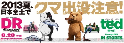 Danganronpa The Animation and the American live-action film Ted are collaborating in a joint promotional campaign featuring the anime's Monokuma character and the film's title bear. The television commercial and poster campaign promotes both works' Blu-ray Disc and DVD releases.