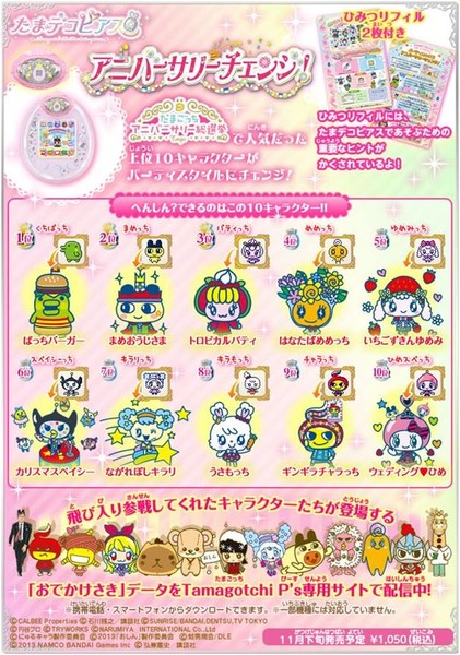 Tamagotchi! is also releasing an Anniversary Change Tama Deco Pierce, featuring costumes designed by fans for the 17th anniversary.