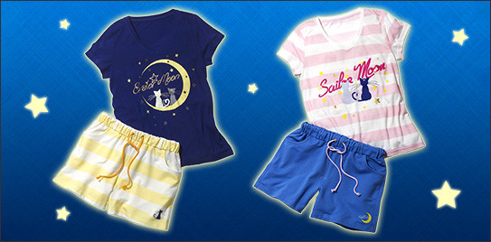 Finally, each 4,980-yen (US$50) Sailor Moon PJ comes with a T-shirt and shorts in two designs: navy shirt with yellow-striped shorts or pink-striped shirt with blue shorts. Both feature designs of Luna and Artemis.