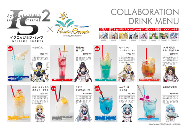 Pasela Resort's Akihabara shop will transform its Bar Rhythm restaurant into an Infinite Stratos cafe to celebrate the upcoming Infinite Stratos 2: Ignition Hearts PlayStation 3 and PS Vita game release. The transformed cafe will feature wall decor and chairs with the series' characters on the back. It will open on Friday and run until February 14. The actual game will be released in Japan on February 27.
