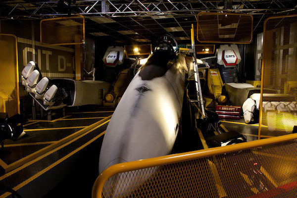 The Town Campus was conceived of as a way to display the Chiba Institute of Technology's cutting-edge research through a series of hands-on, multi-sensational exhibitions. The model of the VF-25F occupies one corner of the new Area II Planetary Exploration Zone, which opened the same day. The new exhibition features seven activities, including a 300-inch 3D space theater, a grand tour over the surface of the sun, an exhibit of katana made from meteorites, and a display of high-resolution photos by Japanese lunar orbiter spacecraft SELENE that allows visitors to take a trip to the moon's surface.