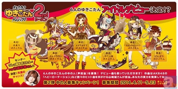 Snow Milk Brand will soon begin the next phase of their "Our Yukiko-tan Project," which will be the formation of a Yukiko-tan idol group, under the supervision of Ayana Taketatsu herself. Though the official timeframe has yet to be announced, they will be taking auditions and applications soon. The group will perform hits composed by Yō Yamazaki, known for his work with AKB48, including their hit single "Heavy Rotation." The announcement of this phase of the project by Taketatsu can be seen on Nico Nico Douga.