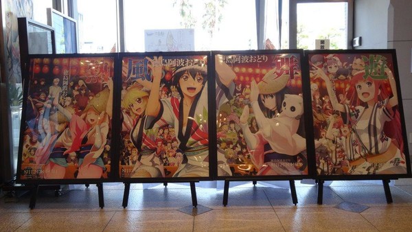 The anime studio has produced posters for 2011, 2012, and 2013's event. Last year's two posters featured various characters from anime and games with ufotable animation, such as the Kara no Kyōkai - the Garden of sinners anime films, the Summon Night games, the Majocco Shimai no Yoyo to Nene film, and the God Eater game series. Studio Pierrot collaborated on 2012's poster for the Awa Odori festival in nearby Naruto City.