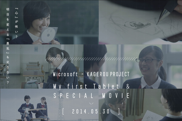 Microsoft has revealed an upcoming collaboration with the Kagerou Project. Its Japanese website displays shots from what appears to be a live-action version of the story along with the text "Microsoft x Kagerou Project: My first Tablet & SPECIAL MOVIE." Unfortunately, no further details are available, and they are not scheduled to be released until May 30.