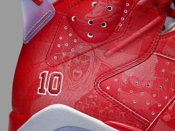 The Air Jordan VI sneakers feature Sakuragi's jersey number embroidered on the outside heel, red uppers, and iconic scenes from the manga.