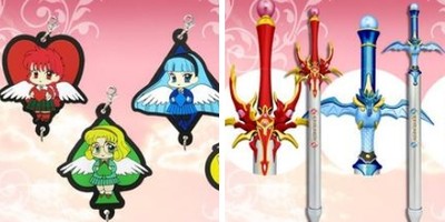Hikaru, Umi, and Fuu's magic swords will be available as prizes at Break Prize machines beginning in December. Like CLAMP's Card Captor Sakura series, Magic Knight Rayearth is celebrating a revival this year as part of its 20th anniversary. The miniature version of Hikaru, Umi, and Fuu's Escudo swords double as pens.