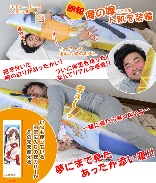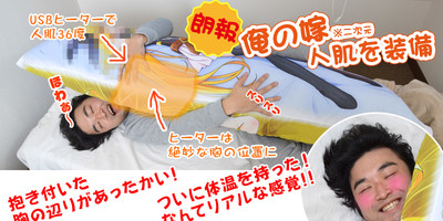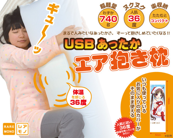 The problem with traditional hug pillows is they just can't mimic the warmth of a human body. But now, with a new USB-powered hug pillow from Thanko's Raremono shop, you can enjoy the feeling of cozying up to a perfectly-heated, just-slightly-under-body-temperature 36 °C warm body. And, because it's inflatable, it's also very light (740 g [~1.6 lbs]), for all those times you need to roll it up for travel, or you want control over the firmness of your pillow.