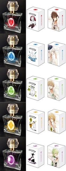 Cozy Wave is re-releasing their line of Amnesia perfumes, offering gals a chance to smell like their favorite, belt-wearing bad boy. The perfumes are getting a redesign, with new bottles and reversible packages that feature the characters' representative animals and the boys dressed in their special White Day outfits. The clothes are a collaboration with Romantica Clothes, the apparel brand of otaku perfume-maker Romantica.