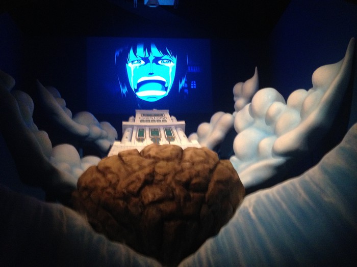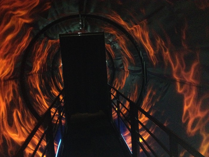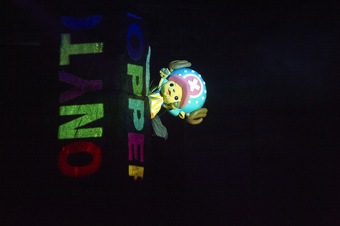 In Luffy's Endless Adventure, fans can relive moments from the manga and anime. Some of the more extreme rooms include fun-house mirror mazes, as well as a hallway with spinning fire projected on the wall, making guests lose their sense of balance. At the end waits a theater where some fights from the anime are recreated in CGI, with other special effects like smoke and wind, making the experience all the more real.