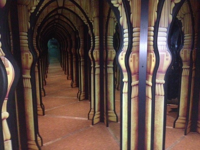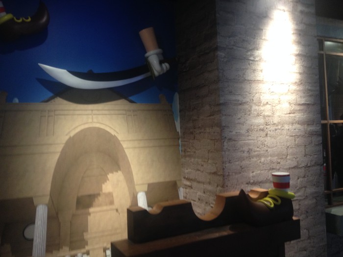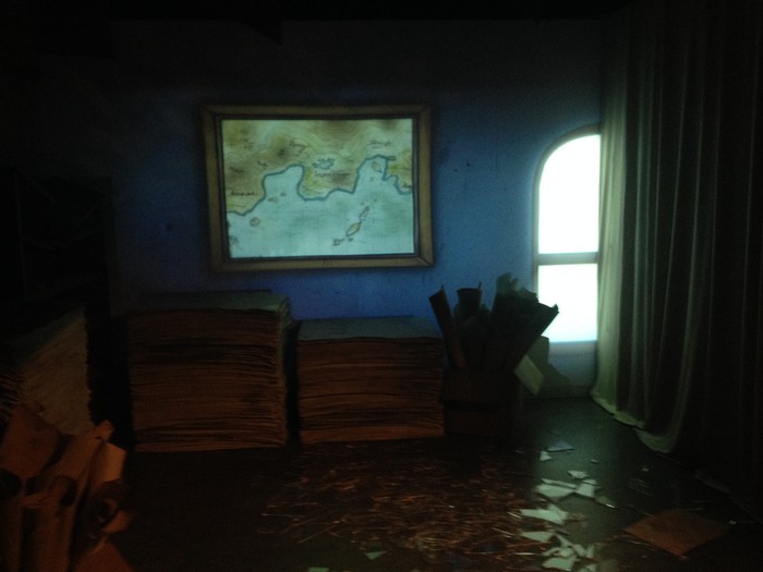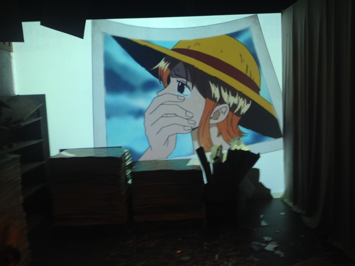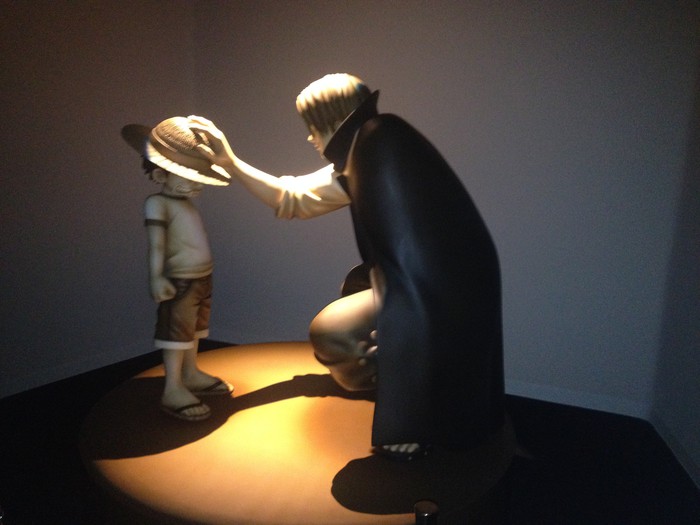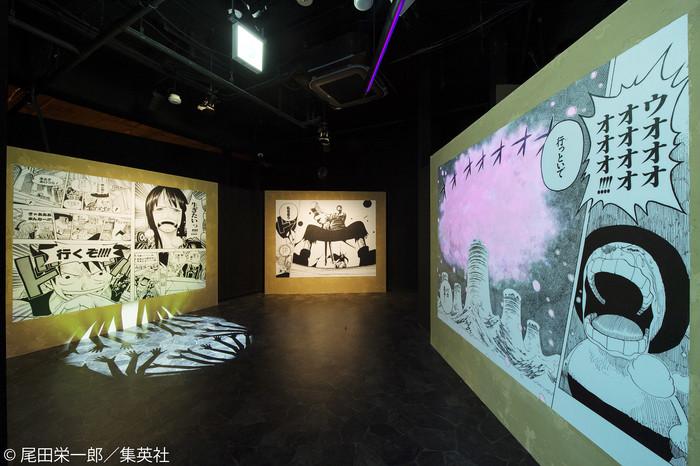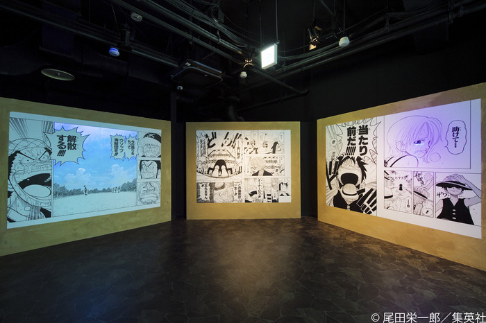 At the entrance corridor, "The Cave of Memories," manga panels are projected on the walls. When walked by or touched, various things will occur, including the color of Nami's tears or the sky behind Usopp changing to blue, and Robin's Flower-Flower powers being shown in shadows on the floor.