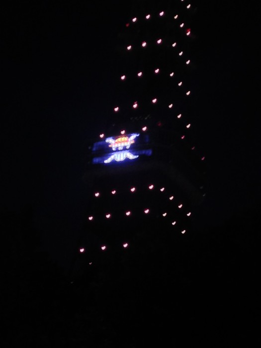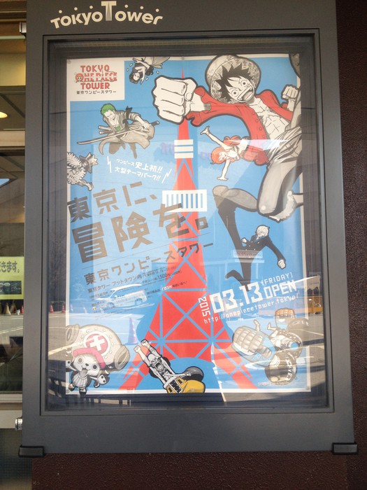 In celebration of the new theme park, the Tokyo Tower was lit up in various colored lights, and unveiled an animation with the Straw Hat pirates that played on a screen on the tower. The final animation shows the Straw Hat flag flapping in the wind.
