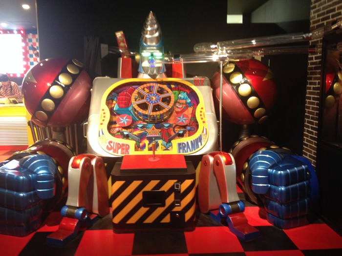 Right near the cola bar is a cola-glugging Franky. Using the pinball-like machine, players who get the ball in the right slot can receive a rare figure.