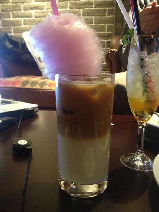 Cotton Candy Chopper Latte, with real cotton candy on the straw