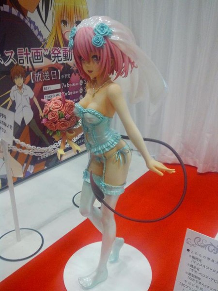 Hobby collectible producer Max Factory unveiled a life-size figure of To Love-Ru -Trouble- Darkness' Momo Belia Deviluke at the Tora no Ana 20th Anniversary Appreciation Fair at Makuhari Messe in Chiba over the weekend. The figure depicts Momo in bridal lingerie like the cover of the To Love-Ru -Trouble- Darkness: Venus artbook.