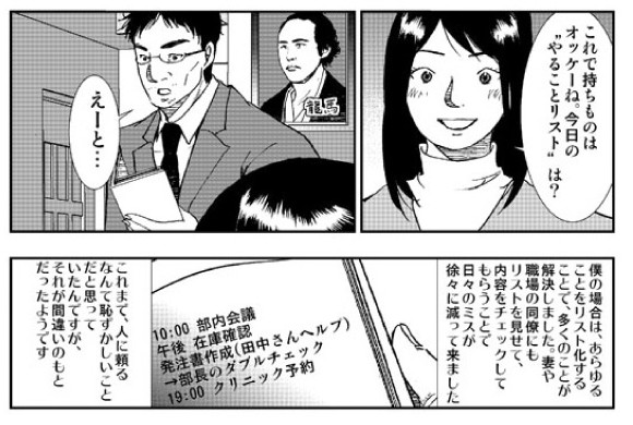 The effects of adult ADHD were depicted in Shūhō Satō's manga Say Hello to Black Jack. In one story, a salaryman named Mr. Takahashi repeatedly forgets important assignments and objects, fidgets during meetings, and loses track of time while reading the newspaper in the morning. When a coworker scolds him for making mistakes on order forms, Takahashi gets distracted by a splotch on the wall. Matters come to a head when he goes home to find his wife distraught; he had forgotten their wedding anniversary. The manga's hero, Dr. Saitō, explains that he has adult ADHD and tells him to carry a notebook around with him and carefully keep track of his commitments and appointments. His coworkers and wife also treat him more patiently, acknowledging that he needs help.
