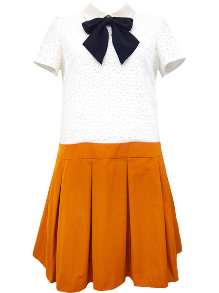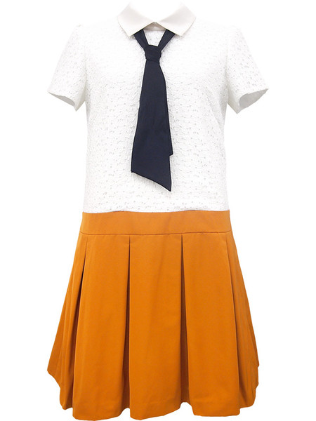 Her own One Piece dress features her signature orange skirt under a lacy collared shirt similar to the average Japanese school uniform. Tied cutely around the lapel is a dark blue ribbon to emulate the red necktie that Retoree normally wears. The ribbon can even be worn as a necktie itself.