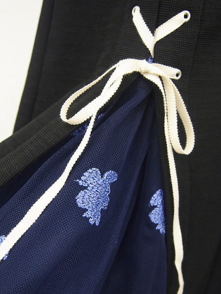 Mature and casually elegant, this dress's side-ribbon lacing teases a dark blue layer accenting the dress quite well. A silhouette of Chuchu's "performance form" can be seen stitched into said layer.