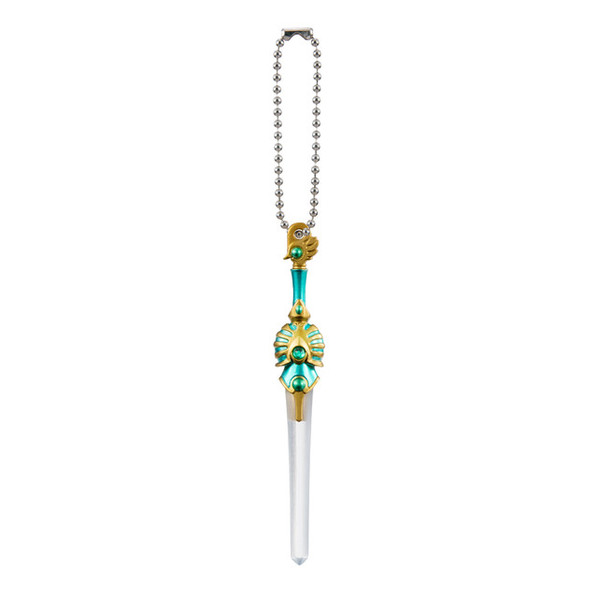 Hikaru, Umi, and Fuu's magic swords are available as gashapon prizes this month. The miniature version of Hikaru, Umi, and Fuu's Escudo swords, as well as their magical mascot Mokona, are available as keychains. Each measures about 80mm (about 3in).