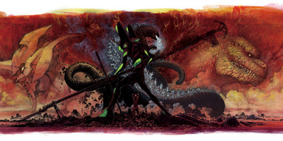 A new visual at the official website shows the fearsome monster taking on an Eva unit. (Hideaki Anno, Neon Genesis Evangelion's director, will co-direct Godzilla Resurgence.)Is the order a rabbit?