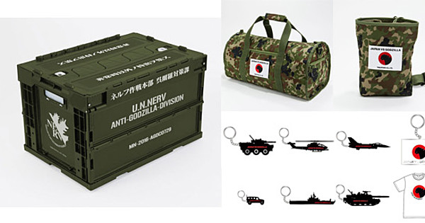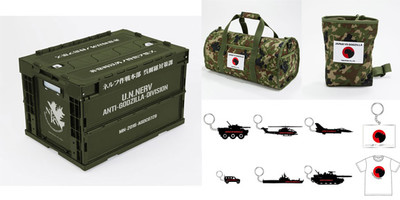 Prospective recruits can join the battle between Unit-01 and Godzilla by purchasing a folding storage container, camo duffle bag, storage pouch, t-shirt, and keychains. The items are available for sale on Amazon Japan or the Evangeion Store.